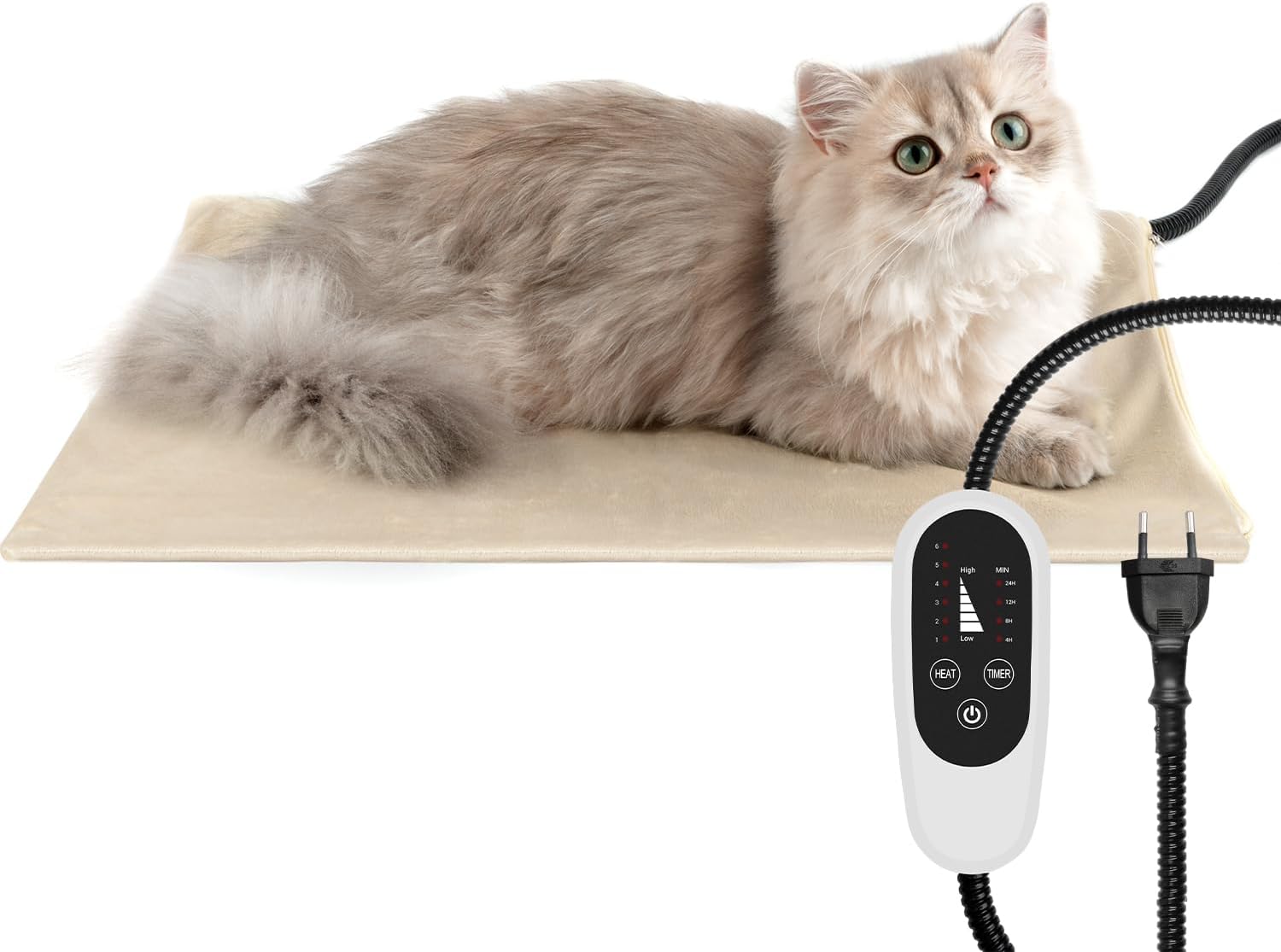Wärme & Heizleistung: Liefert gleichmäßige Wärme von 30-55°C.Stromversorgung & Sicherheit: Besitzt kau-resistentes Stahlseil-Kabel.